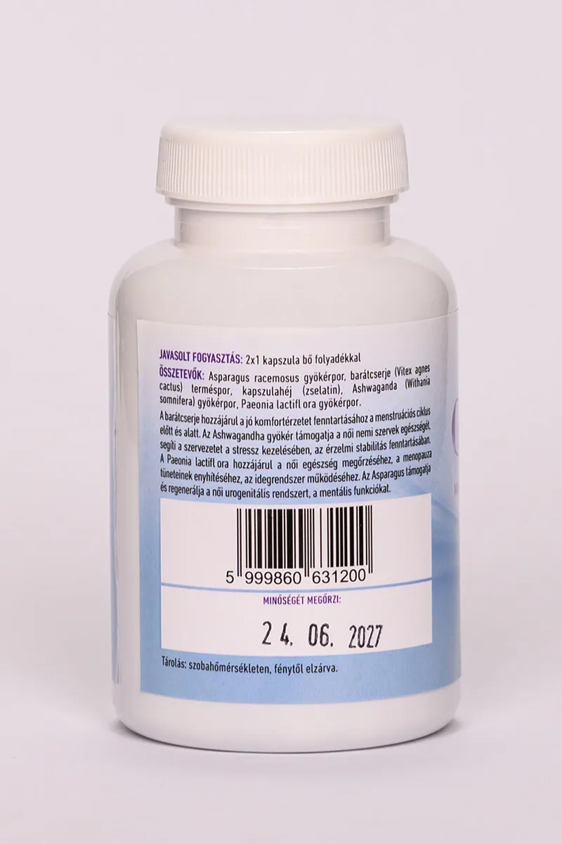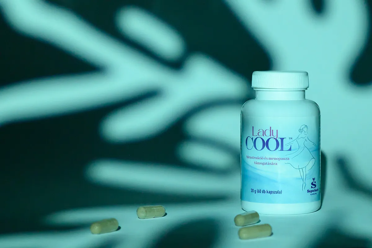 Lady Cool – barátcserjét, ashwagandát és gyógynövényeket tartalmazó étrend-kiegészítő kapszula, a menstruáció és menopauza támogatására.